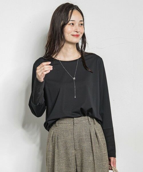 布帛のようなきちんと感を持ちながら、ジャージならではのラクさを叶えたカットソー。すっきりとしたクルーネックとシンプルなシルエットで、オン・オフ問わず活躍します。袖口の切り替えがさりげないアクセントに。