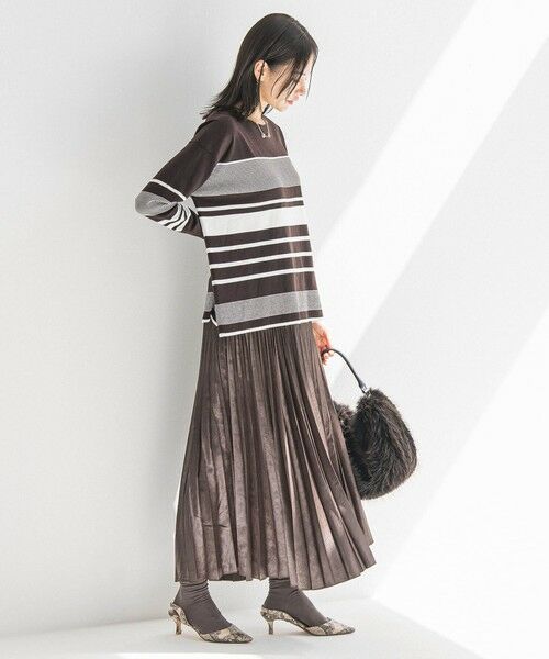 たっぷりとした分量感と、シャープに効かせたプリーツが動くたびに揺れ、上品な存在感を放つスカート。