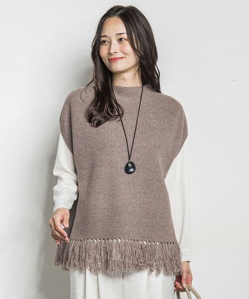 裾に施したフリンジがクラシカルなムードを漂わせるニットベスト。ボクシーなシルエットで全体をすっきりと仕上げ、シャープな印象をプラスしています。カシミヤとシルクをブレンドした上質な素材を使用し、軽やかで柔らかな肌あたりと、暖かさを兼ね備えた1枚に仕上がっています。
