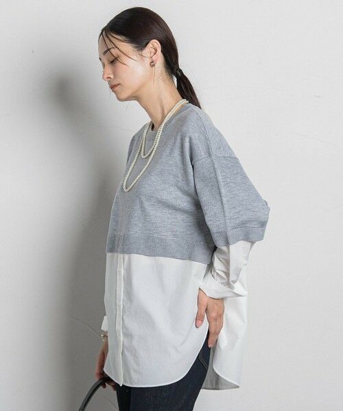 シャツとニットをドッキングしたレイヤード風デザインのプルオーバー。
