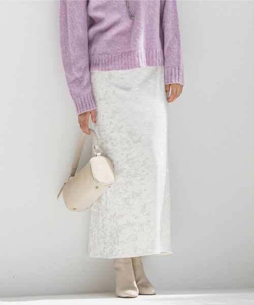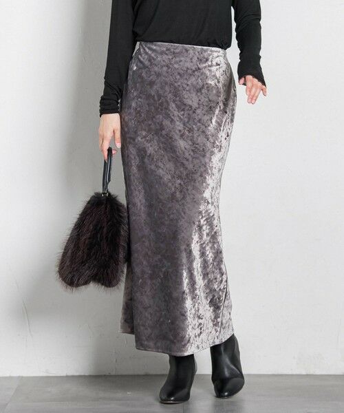 しなやかな光沢が上品な印象を与えるベロアスカート。
