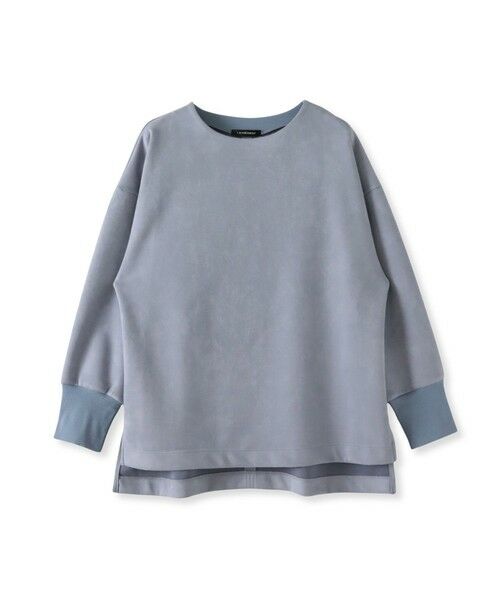 【デザイン】フェイクスエード素材を使用したプルオーバー。前後差のある着丈で、着るだけでこなれた印象に仕上がるデザイン。背中には縦にステッチを入れ、シンプルながらポイントのある表情にしています。袖口とネック後ろはリブ仕様で、ほどよいカジュアル感と着心地の良さを両立。ゆったりめのシルエットで体のラインを拾いにくく、インナーとしても一枚着としても使いやすいアイテムです。同素材のスカートと合わせてセットアップでの着こなしも可能です。【素材】柔らかな質感のフェイクスエード素材を使用。ストレッチ性があり、動きやすく快適な着心地です。【仕様】裏地なし