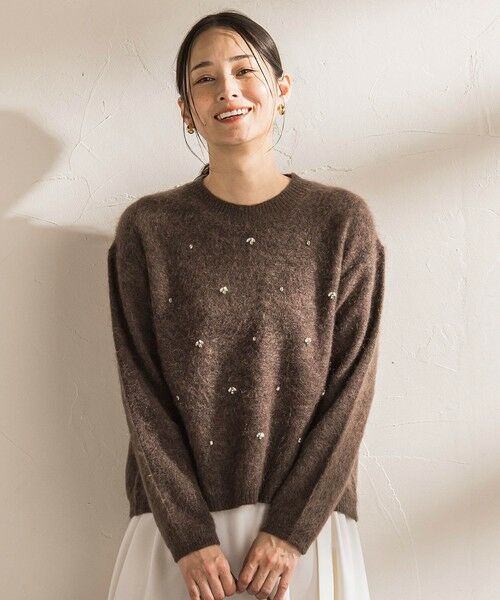 モヘア混のふんわりとしたヘアリー感のある糸で編み上げたシンプルなニットに、