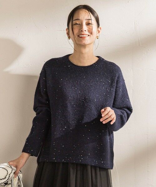 細く柔らかなモヘアにラメとスパンコールをミックスした糸を表側に使用。