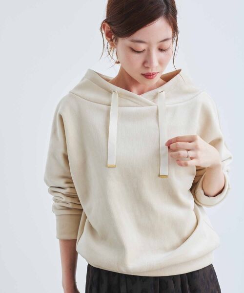 奥行の出る抜け感のあるネックデザインが顔回りをスッキリみせてくれ着やせ効果〇