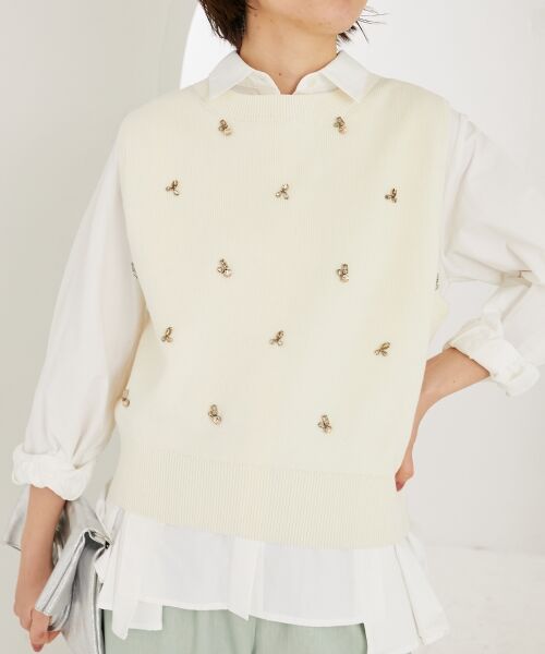 キラリと光るビジューの刺繍がポイントのニットベスト。