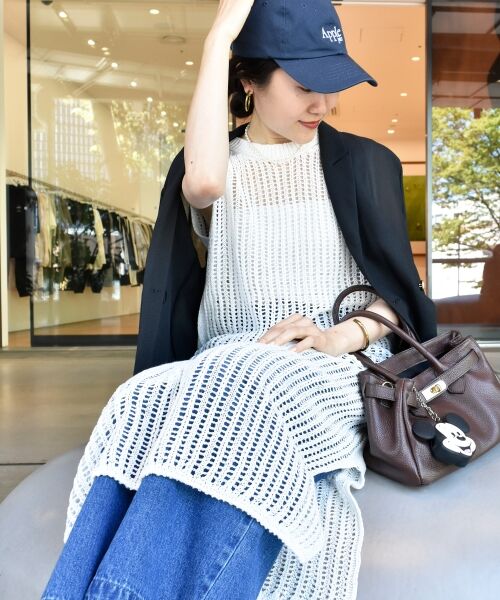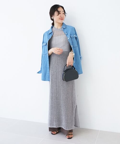 レイヤードコーデをクラスアップするメッシュニットワンピース。