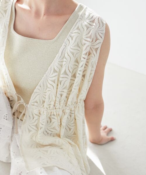 程よい開き具合のスクエアタンクでニット素材で楽に着られます。