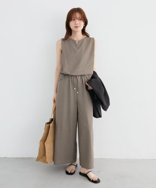 上下セパレート風デザインで1枚でサマになるオールインワンコーデが完成。