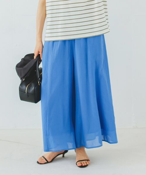 裾に向かって広がるフレアシルエットでさりげなくスカート見えするリラックス感のあるパンツ。