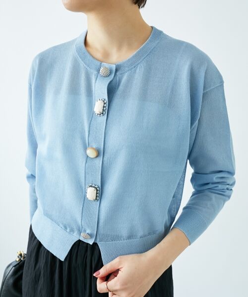 今回は春気分ぴったりなフレッシュなカラーも。毎回変化するビジューボタン、今回は涼しげなクリアな付属を選びました。
