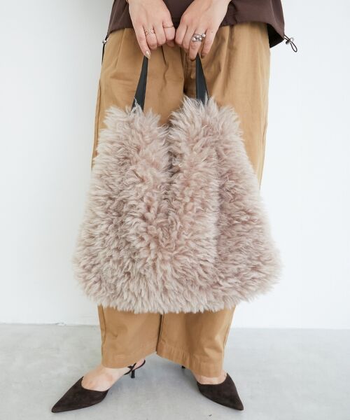 シーズンムードたっぷりな主役級のエコファーバッグ。ボリューミーなサイジングと、ふわふわのファーが愛らしいバッグ。●ポイントたくさん荷物の入る実用性もありながら、コーディネートのポイントとなってくれる存在感が魅力。トートバッグとしてはもちろん、クラッチバッグのように持つもの素敵です。*この製品は人工毛皮(フェイク・ファー)を使用しておりますので、お取り扱いにご注意ください。