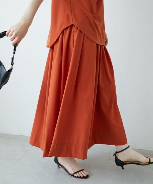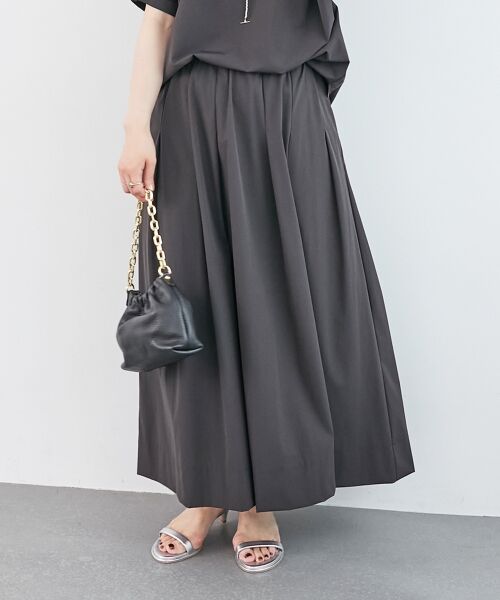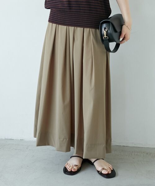 ウエストにタックのように見えるデザインはトップスをインにしてもウエストまわりをすっきり見せてくれます。