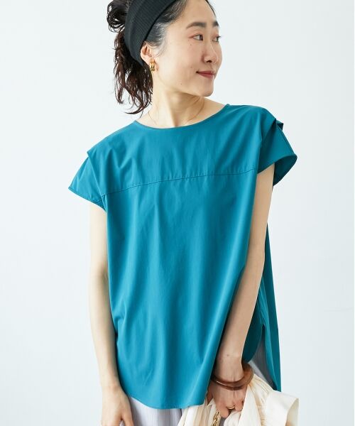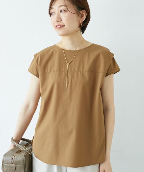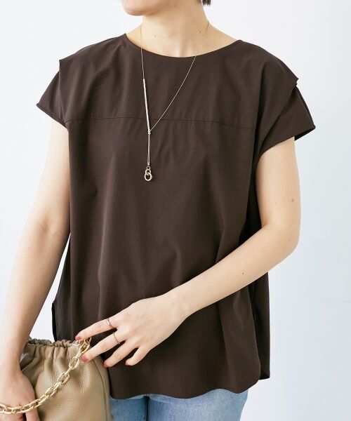 肩のデザインタックがポイントのブラウス。