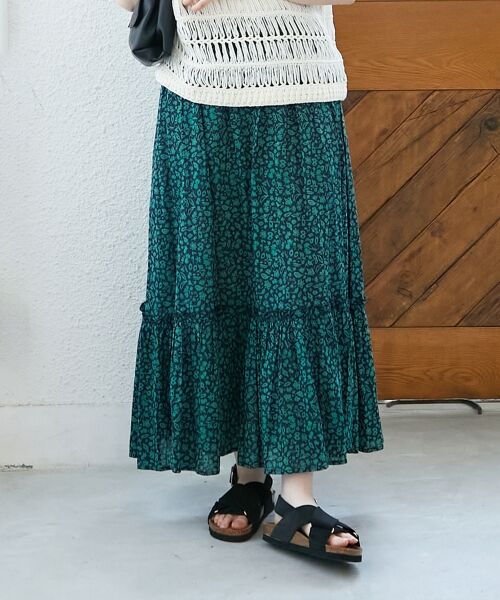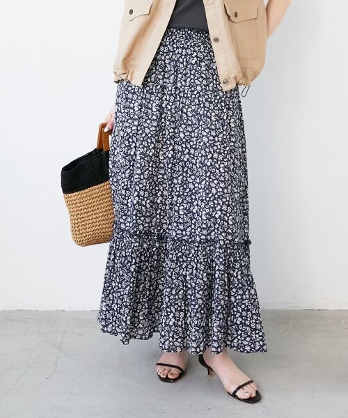 ティアードデザインがさりげなくお洒落で動くたびに揺れるシルエットが華やかな印象のスカートです。