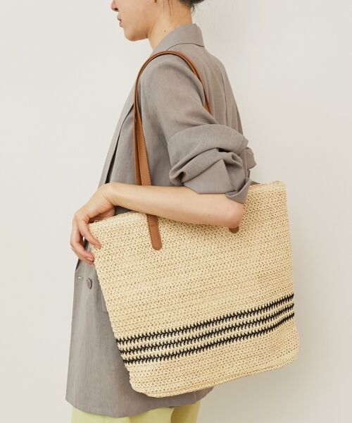 《WEB限定アイテム》春夏のコーデのアクセントになるペーパー素材のトートバッグラインの入ったデザインはシンプルながらに程よいアクセント。ナチュラルな雰囲気が様々なコーデに溶け込んでくれます。ジップ付きで安心してお使いいただけます。