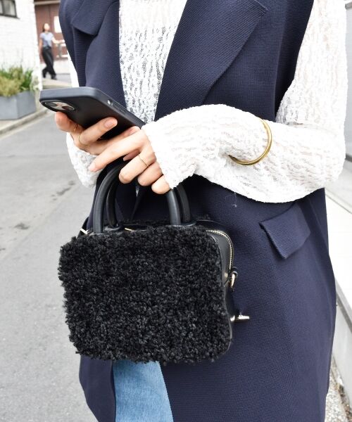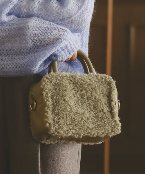 【コンパクトにおしゃれを楽しむ】 コロンとしたスクエアフォルムとふわふわのボアが可愛らしい2wayミニボストンバッグ。ミニサイズなので主張しすぎず程よいアクセントになり、コーディネートに季節感をプラスしてくれるアイテムです。内ポケット:1つ*摩擦や水濡れによる色落ち・色移りにご注意下さい。