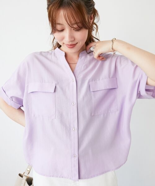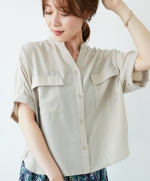 着用感:胸元のポケットデザインがアクセントになり、シンプルですが、印象あるシャツになります。