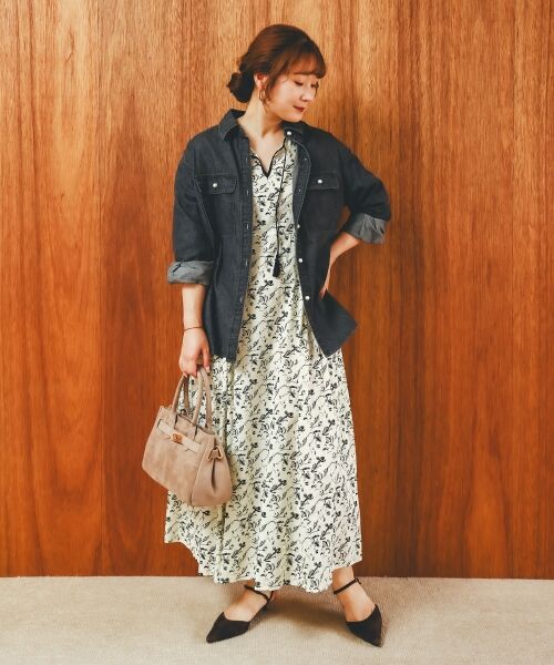 総柄のデザインワンピースは1枚で着るだけでぱっと華やぎ着映える便利なアイテムです。