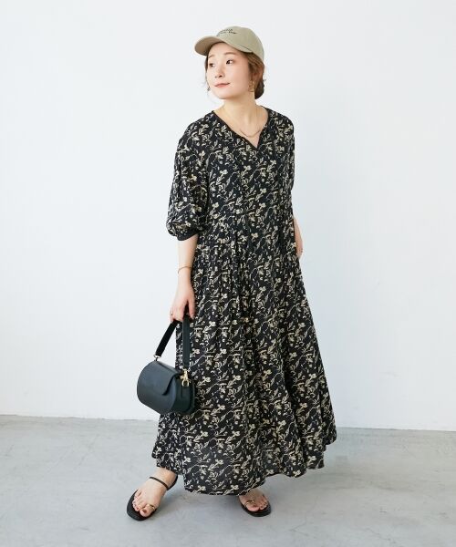 軽くて滑らかな肌触りが心地よい、インドの綿レーヨンボイルを使用したオリジナルのフラワーモチーフ柄のプリントワンピース。
