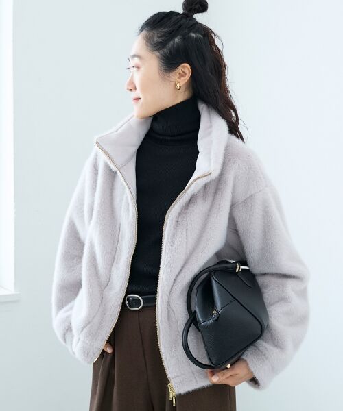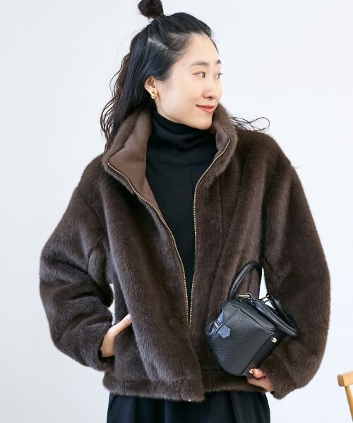 短めの毛足ですが毛の密度が濃いミンク風のフェイクファーを使用したショートコート。