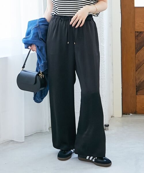 光沢感が上品なサテン素材を使用したイージーパンツ。