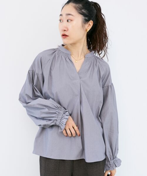 ゆとりのあるサイジングでふんわりとしたボリュームスリーブで女性らしいシルエット。