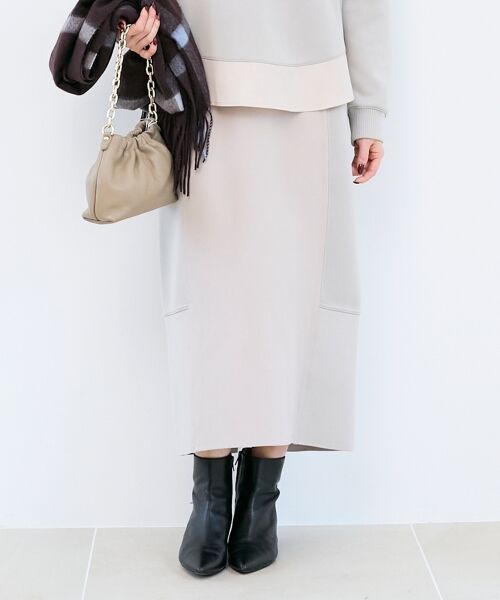 杢調の合繊素材と大胆に切り替えることにより鮮度ある表情に仕上げました。