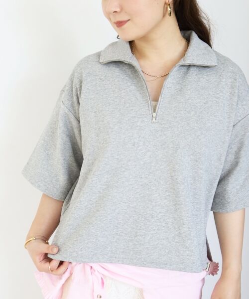 程よいショート丈が旬なバランスを演出する、抜け感と今っぽさを両立した、ハーフジップトップス。
