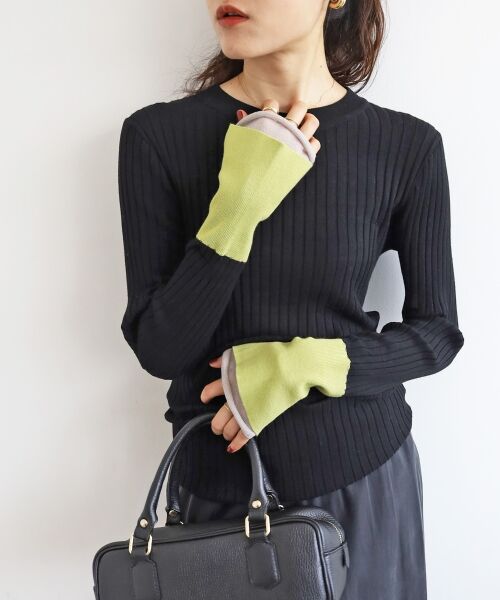 《WEB限定アイテム》一枚着でもアウターINでもレイヤード風が楽しめるワイドリブニットシンプルな身頃に袖にはシースルーの異素材配色がポイント。さらっと一枚でもコーデが仕上がるのはもちろん、アウターのINに袖を出しても可愛い♪一枚あると着こなしの幅がぐっと広がるアイテムです。洗い不可 ドライクリーニング可