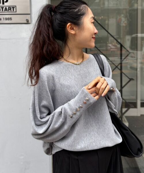 袖に施した多色使いのジュエリー調ボタンがアクセントになるので1枚での着用はもちろん