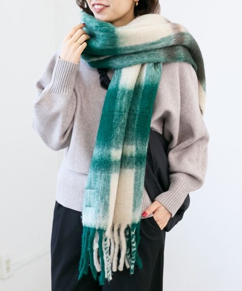 やわらかくボリュームのある素材で、首元にふんわり巻くだけであたたかさと華やかさをプラス◎