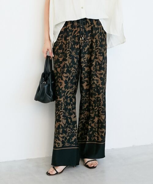 華やかでエレガントなフラワープリントが目を引く、パネルデザインのパンツ。