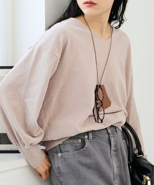 柔らかなモールヤーン素材で、肌触り抜群のVネックプルオーバー。