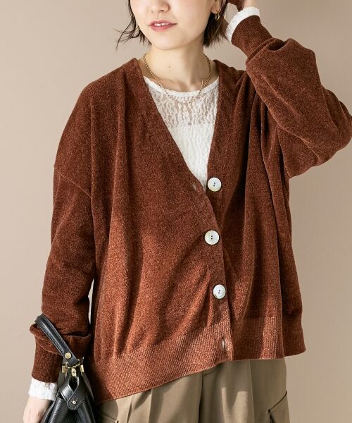 柔らかな素材とVネックのデザインが、どんなコーディネートにも自然に馴染みます。