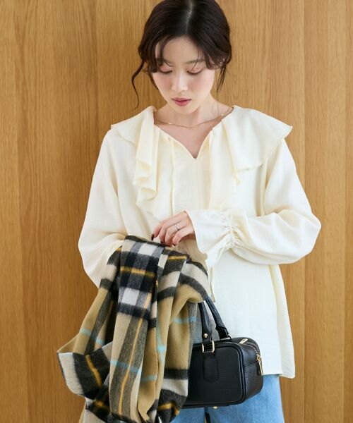 たっぷり生地を使ったフリル襟がゴージャスなブラウス。