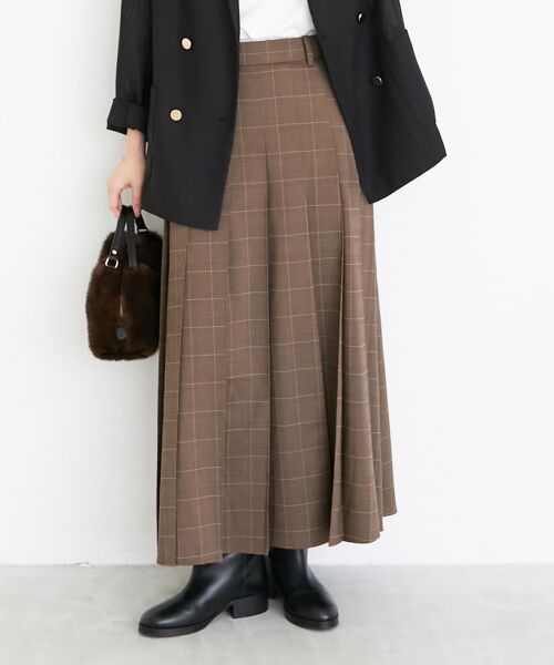 落ち着いたカラーと細かいグレンチェック柄でトップスが柄物でも邪魔をせず、どんなアイテムとも合わせやすい1枚です。