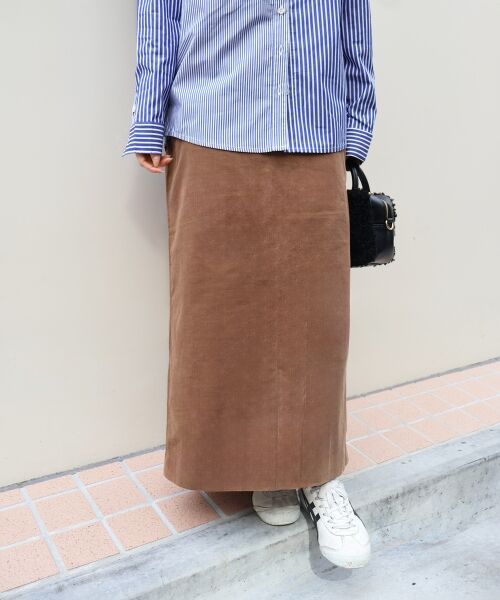 コーデュロイ素材で季節感をまとった、大人カジュアルなロングスカート。広がりすぎないシルエットに、横スリットをプラスすることで動きやすさと抜け感を演出。ニットやスウェットと合わせればカジュアルに、ブラウスを合わせればきれいめにも◎手洗い可 ドライクリーニング可 陰干し*摩擦や水濡れによる色落ち・色移りにご注意下さい。