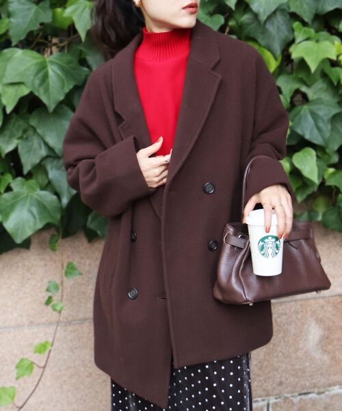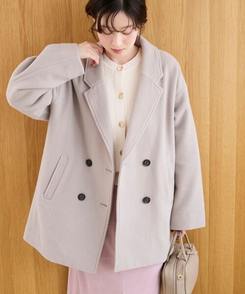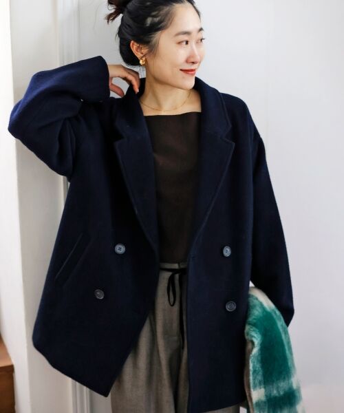Pコート型をベースにメンズライクすぎず羽織りやすい1着。