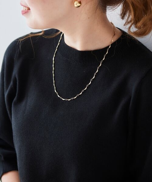 三日月のようなウェーブデザインがおしゃれで、存在感のあるネックレス。揺れるたびキラキラと輝くメタルは合わせやすく、首元を華やかにしてくれます。1本使いではもちろん、お手持ちのネックレスと合わせて使ってもかわいくて◎*デリケートな素材を使用しておりますのでお取扱いにご注意下さい。*アレルギー体質の方や体調が低下している方などかぶれることがありますのでご注意下さい。