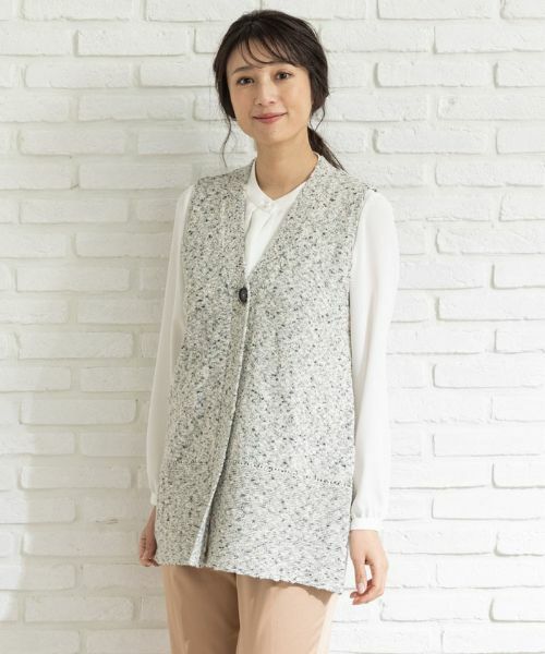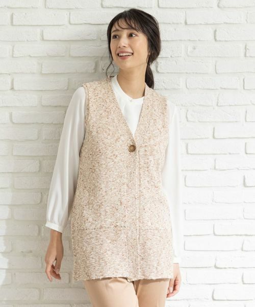 ミックスヤーンのナチュラルな色合いが美しいニットベスト。程よくゆったり仕上げたシルエットも可愛らしい、シンプルコーデの羽織りに活躍してくれるアイテムです。裾部分は編み地を変えることでさりげないアクセントをプラス。
