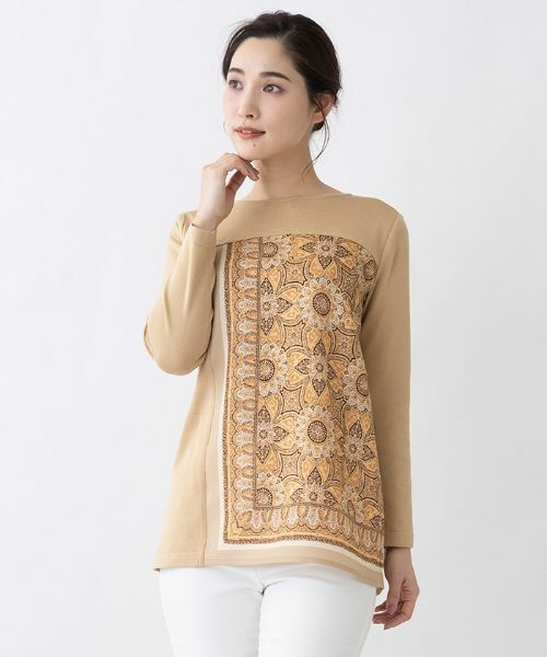 繊細な模様に心惹かれるプリント生地でアシンメトリーに切替えたハイゲージニットプルオーバー。浅めのネックラインが上品さのある、1枚で品よく仕上がるアイテムです。ハイウエストのパンツやスカートなどにインしてみるのも素敵なコーデに。※定価(税込)は、2022年06月29日のセール開始前の店舗における販売価格です。家庭洗濯不可漂白不可タンブル乾燥不可アイロン低温120℃まで石油系溶剤ドライクリーニング弱ウェットクリーニング不可