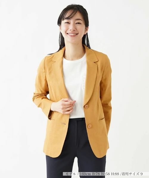 シンプルなロゴTなど、ラフなトップスにデニムパンツ(スカート)でまとめたコーデに、こちらのテーラードジャケットを羽織れば一気にこなれた印象に。普段着もおしゃれに彩ってくれる万能アイテム。