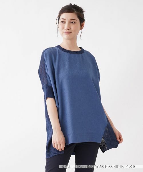 ダイナミックな異素材切り替えで、シンプルなボトムスとのコーディネートも個性的に仕上がるドルマンニットプルオーバー。オーバーサイズなシルエットで身体のラインを拾わず、ざっくりとこなれたスタイリングに仕上がります。※定価(税込)は、2022年06月29日のセール開始前の店舗における販売価格です。家庭洗濯不可漂白不可タンブル乾燥不可アイロン低温120℃まで石油系溶剤ドライクリーニング弱ウェットクリーニング不可