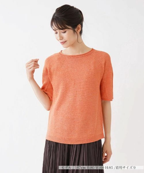 春夏スタイルにぴったりの爽やかな素材感が心地いい半そでニットプルオーバー。つかず離れずのシルエット&無地デザインで、バツグンの着まわし力を発揮。パンチの効いた柄ボトムスと難なく合わせられる1着です。
