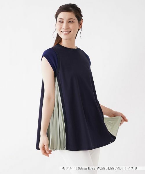 ボディ、スリーブ、プリーツをそれぞれ配色で切り替えたプルオーバー。ふんわりと広がるAラインシルエットが体形をカバーしつつ、軽やかな着こなしを演出します。大人のコーディネートにも取り入れやすい、遊び心を漂うデザインが好ポイント。