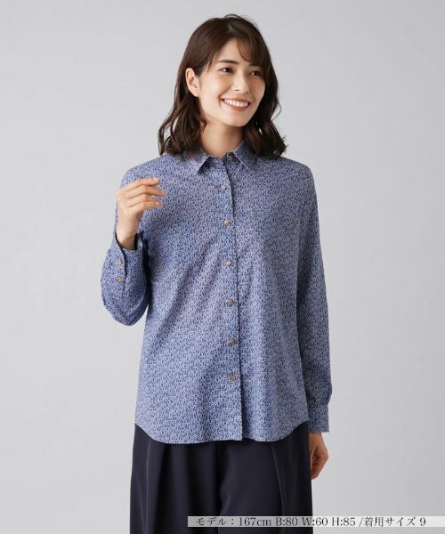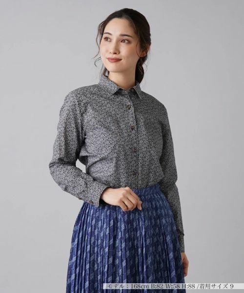 アルファベットの細かな総柄プリントを落とし込んだ、ユニークなデザインの長袖シャツ。上品な佇まいの襟と、ボディラインに心地よくフィットするスマートなシルエットで仕上げています。肌当たりのよいさらりとした風合いのコットン生地を使い、快適な着心地を叶えました。