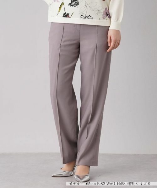 オンオフのシーンを選ばず、幅広く活躍してくれそうなプレーンなデザインのパンツ。センタープレスを付けた、程よいリラックス感のあるストレートシルエットが快適な穿き心地と洗練された雰囲気のスマートさを両立。股上をやや深めに設定しているため、かがんだ際のヒップ周りも楽になります。ウエストは伸縮性があり程よいフィット感。