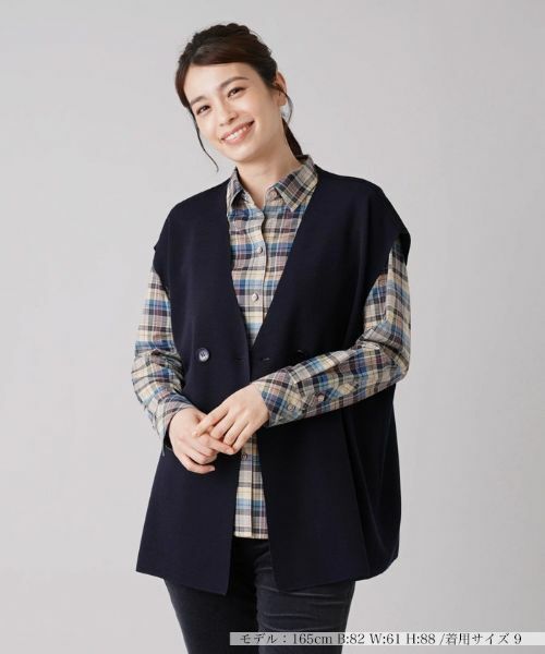 ふわっとこなれ感たっぷりに羽織れるオーバーサイズなシルエットで、シンプルながらも大人の余裕薫るレイヤードが楽しめるニットベスト。深めに開いたシャープなVネックが絶妙なバランスの抜け感を演出。フロントにあしらったダブルボタンが、スタイリングをちょっぴりマニッシュに引き締めます。ボタンにはさりげなくロゴをあしらい、こだわりを感じさせるアクセントに。