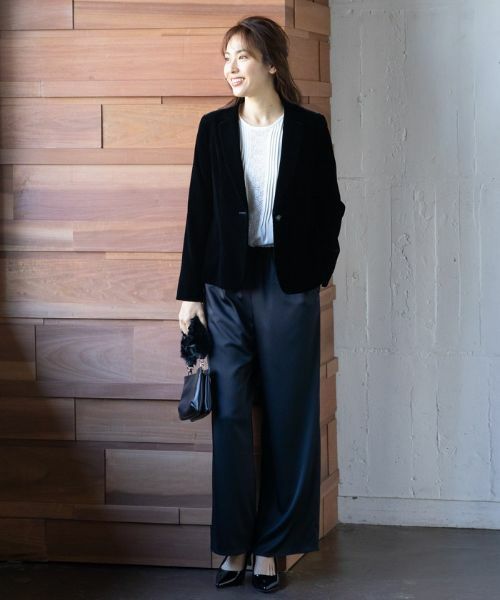 肌触りのよいやわらかなレーヨン生地で仕立てた、シックなカラーのショートブレザー。すっきりとしたカラー&ラペルが顔周りをスマートに引き立て、大人の女性らしい洗練された雰囲気を演出。ウエスト両サイドにシンプルなポケットをレイアウト。短めの丈感でコンパクトにスタイリングできるので、パンツ・スカートを問わずボトムスの存在感も際立ち、軽快な印象でバランスのよいコーディネートが楽しめます。